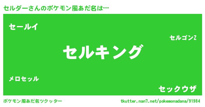 | 男性向けラノベタイトル風あだ名 | 『セルダー~年齢イコール彼女いない歴の魔法使い~』 |