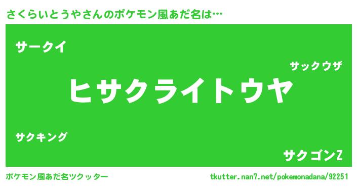 | 男性向けラノベタイトル風あだ名 | 『ダンジョンにさくらいとうやを求めるのは間違っているだろうか』 |