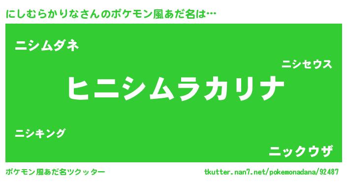 | 意味不明あだ名 | 『とにかく怪しいにしむらかりな』 |