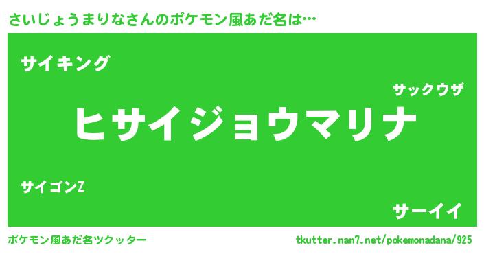 | 意味不明あだ名 | 『とにかく怪しいさいじょうまりな』 |