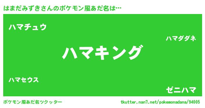 | 男性向けラノベタイトル風あだ名 | 『はまだみずき~年齢イコール彼女いない歴の魔法使い~』 |