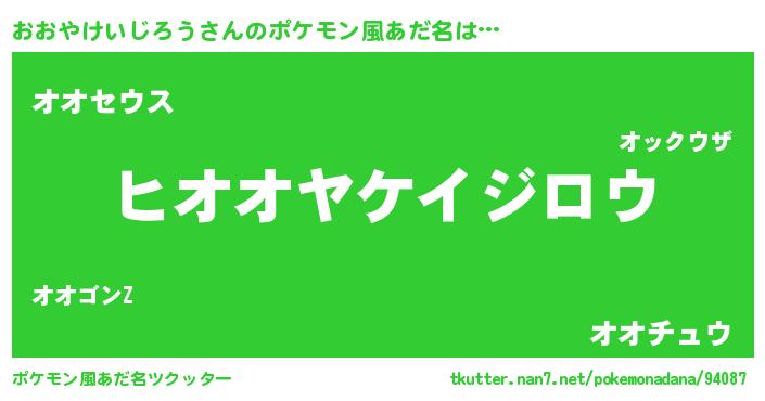 | 男性向けラノベタイトル風あだ名 | 『おおやけいじろうの嫁は女の子じゃないと思った?』 |