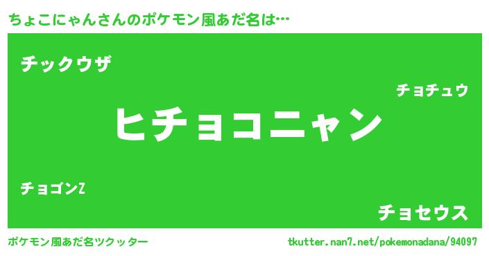 | 欧米人風あだ名 | 『ウサインちょこにゃん』 |