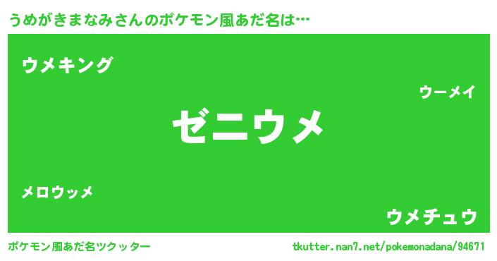 | ヘコむあだ名 | 『うめがきまなみ(震え声)』『うめふぇ~』 |