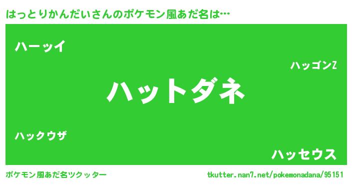 | 男性向けラノベタイトル風あだ名 | 『やはりはっとりかんだいの青春ラブコメはまちがっている 』 |