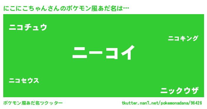 | 女子向けラノベタイトル風あだ名 | 『にこにこちゃんが死なない童話 林檎のにこにこちゃんの診療簿』 |