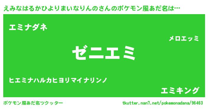 | 女子向けラノベタイトル風あだ名 | 『えみなはるかひよりまいなりんのの契約王妃』 |