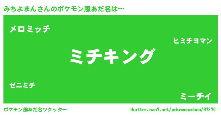 | 男性向けラノベタイトル風あだ名 | 『みちよまん~年齢イコール彼女いない歴の魔法使い~』 |
