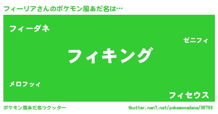 | 男性向けラノベタイトル風あだ名 | 『フィーリア~年齢イコール彼女いない歴の魔法使い~』 |