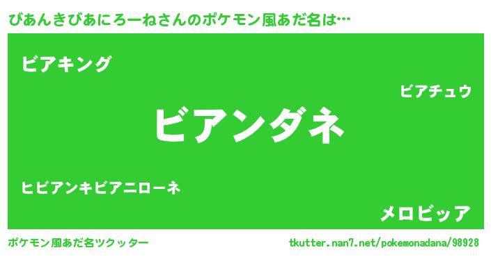 | 自動車の名前っぽいあだ名 | 『ビクア』『ビールスアイス』 |