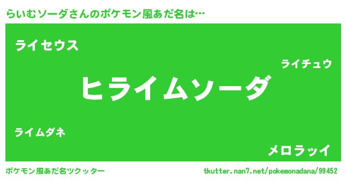 | 意味不明あだ名 | 『とにかく怪しいらいむソーダ』 |