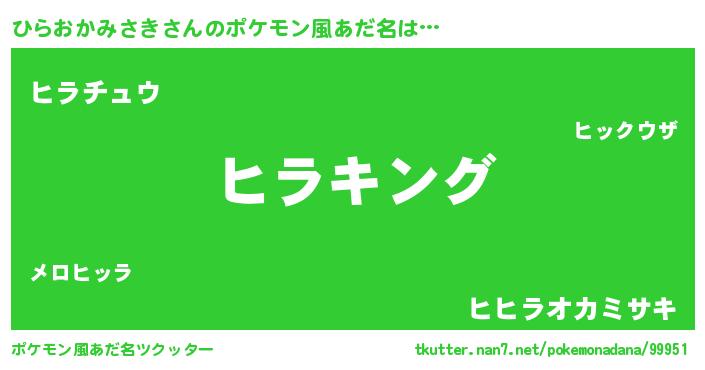 | 男性向けラノベタイトル風あだ名 | 『ひらおかみさき~年齢イコール彼女いない歴の魔法使い~』 |