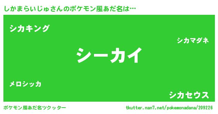 | 意味不明あだ名 | 『住所不定無職しかまらいじゅ(7歳)』 |