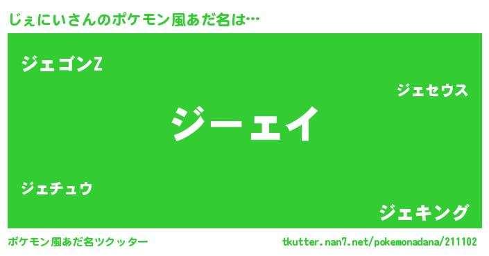 | 男性向けラノベタイトル風あだ名 | 『魔弾の王とじぇにい』『じぇにいの憂鬱』 |