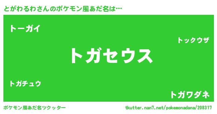 | ヒーロー風カッコイイあだ名 | 『超時空戦士トガワルワ』『仮面トガダー』 |