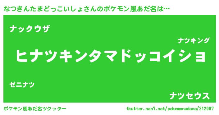 | 意味不明あだ名 | 『とにかく怪しいなつきんたまどっこいしょ』 |