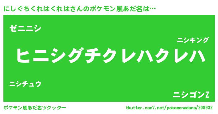 | 意味不明あだ名 | 『とにかく怪しいにしぐちくれはくれは』 |