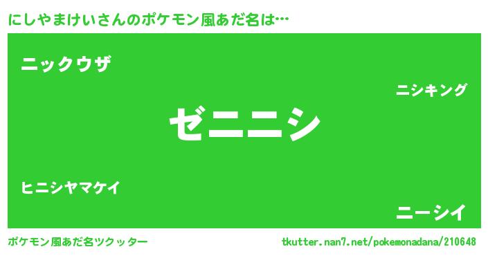 | ヘコむあだ名 | 『にしやまけい(小並感)』『にしを』 |