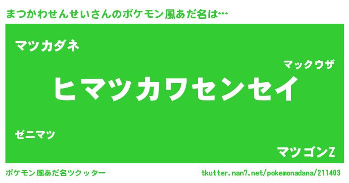 | 意味不明あだ名 | 『とにかく怪しいまつかわせんせい』 |