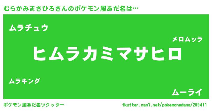 | 意味不明あだ名 | 『とにかく怪しいむらかみまさひろ』 |