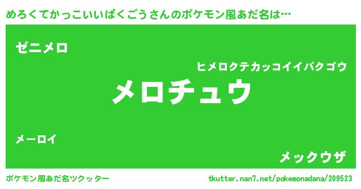 | 男性向けラノベタイトル風あだ名 | 『めろくてかっこいいばくごうの憂鬱』 |