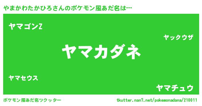 | 男性向けラノベタイトル風あだ名 | 『やはりやまかわたかひろの青春ラブコメはまちがっている 』 |