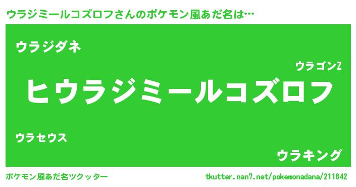 | 女子向けラノベタイトル風あだ名 | 『ウラジミールコズロフの卵を拾いまして』 |