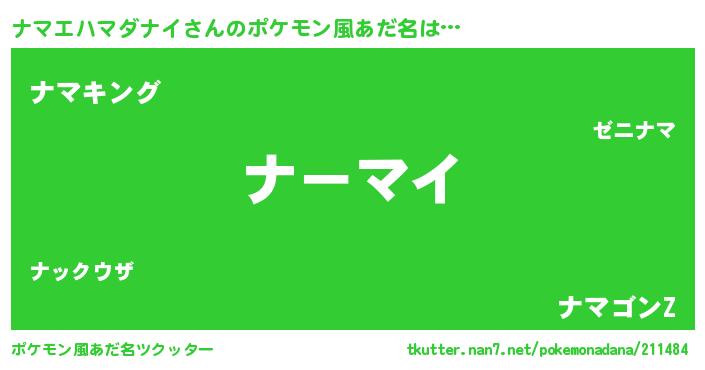 | ヒーロー風カッコイイあだ名 | 『仮面ナマダー』『ネオナマエハマダナイ』 |