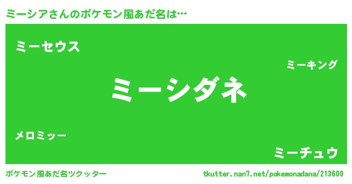 | 意味不明あだ名 | 『ミーシアフォーエバー』『自称ミーシア』 |