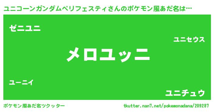 | 意味不明あだ名 | 『永久保存ユニコーンガンダムペリフェスティ』 |