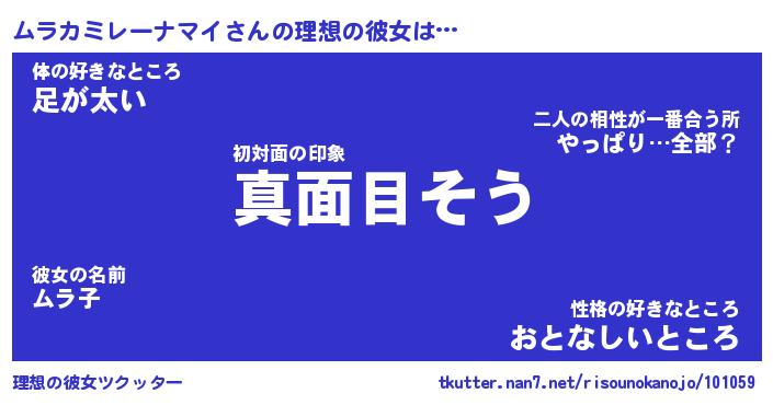 | 男性向けラノベタイトル風あだ名 | 『ムラカミレーナマイの憂鬱』 |
