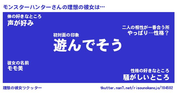 | 男性向けラノベタイトル風あだ名 | 『モンスターハンターの憂鬱』 |