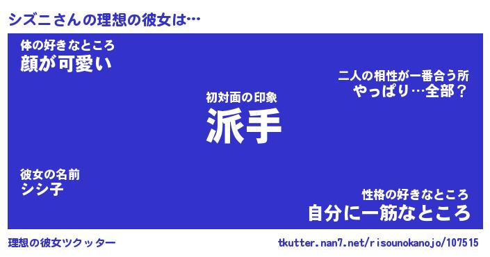 | ヘコむあだ名 | 『シズふぇ~』『つくし』『シズっ子』 |