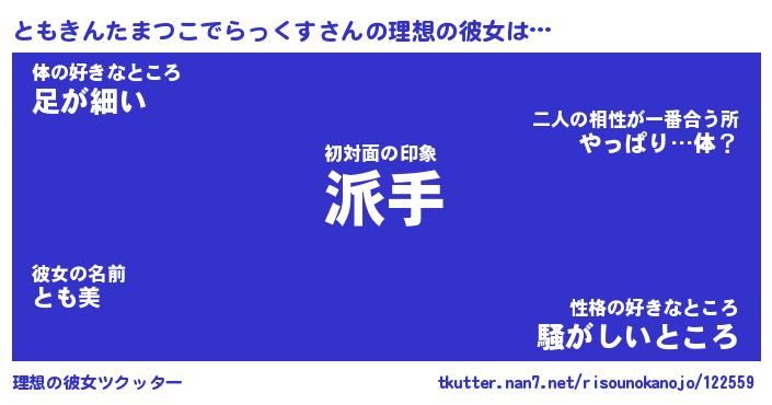 | 女子向けラノベタイトル風あだ名 | 『(仮)ともきんたまつこでらっくすのやんごとなき事情』 |