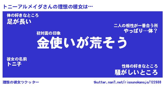 | 女子向けラノベタイトル風あだ名 | 『誰かこのトニーアルメイダを説明してください! ~契約から始まるウェディング~』 |