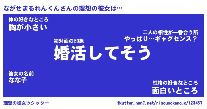 | 女子向けラノベタイトル風あだ名 | 『誰かこのながせまるれんくんを説明してください! ~契約から始まるウェディング~』 |