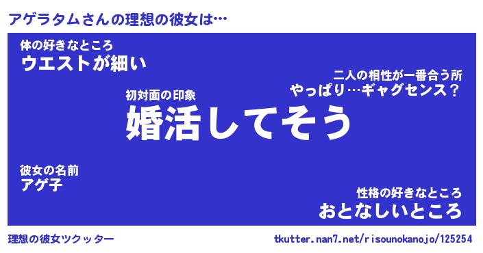 | ファンタジー風あだ名 | 『アゲフェル』『エターナルアゲラタムー』 |