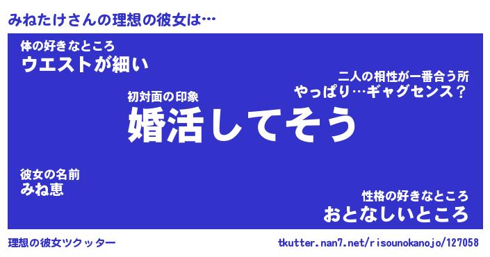 | ファンタジー風あだ名 | 『ミネフェル』『エターナルミネタケー』 |
