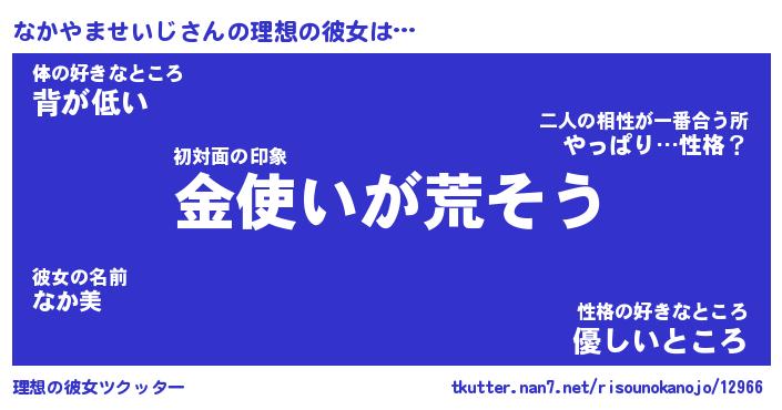 | ヘコむあだ名 | 『なかっふぃ~』『なまこ酢』 |
