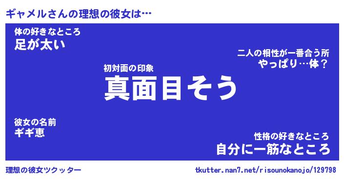 | 意味不明あだ名 | 『ペロリンギャメル』『永久保存ギャメル』 |