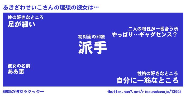 | 女子向けラノベタイトル風あだ名 | 『(仮)あきざわせいこのやんごとなき事情』 |
