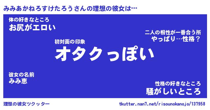 | ヘコむあだ名 | 『みみにー』『牛乳』『みみ太郎』 |