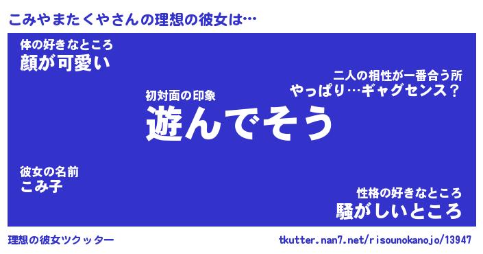 | ヘコむあだ名 | 『こみにー』『つくし』『こみっちょ』 |