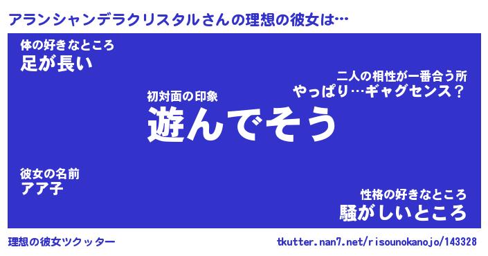 | 男性向けラノベタイトル風あだ名 | 『アランシャンデラクリスタルの憂鬱』 |