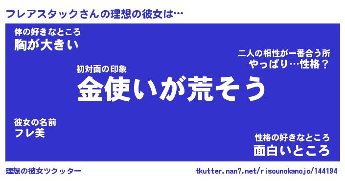 | 恥ずかしいあだ名 | 『プリティーフレアスタック』『フレちん』 |
