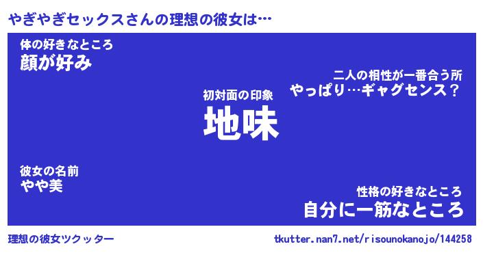| 料理風あだ名 | 『ほっこり♪やぎやぎセックスの味噌そぼろ煮』 |