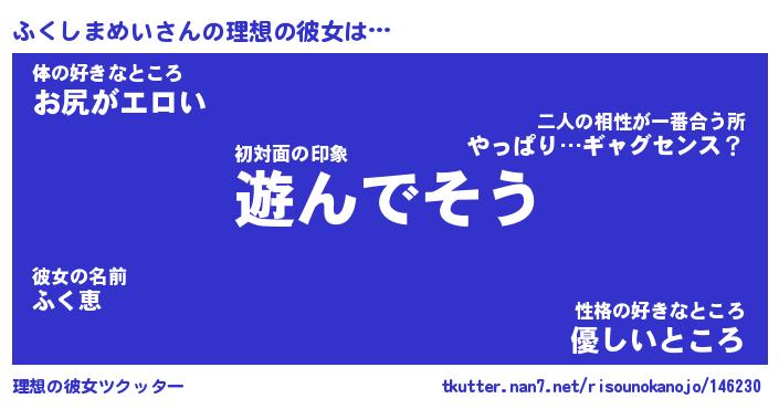| ヒーロー風カッコイイあだ名 | 『スーパーフクシマメイ』『魔戒騎士フク』 |