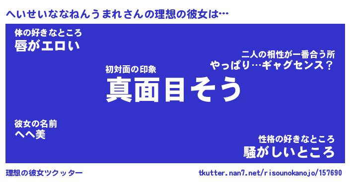 | 意味不明あだ名 | 『ペロリンへいせいななねんうまれ』 |