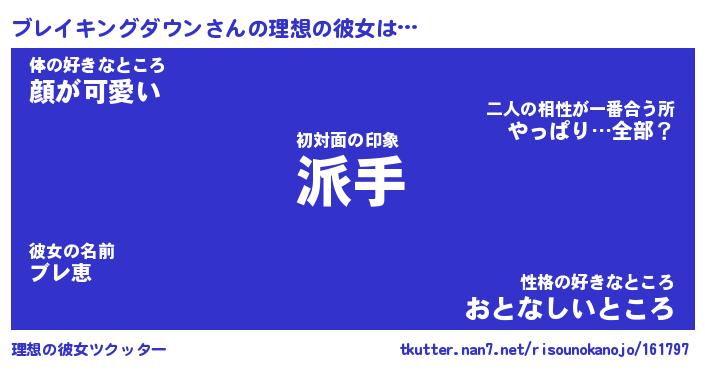 | 男性向けラノベタイトル風あだ名 | 『ブレイキングダウンの憂鬱』 |