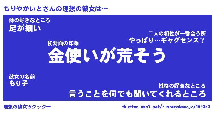 | ヘコむあだ名 | 『もりにゅー』『酢こんぶ』『もりを』 |
